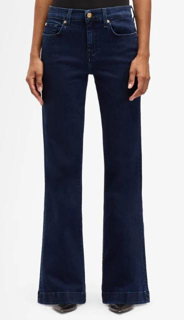Fits like: Fitted through the hips and thighs. This mid rise denim has a wide, full-length leg and a subtle flare for a long, lean silhouette.