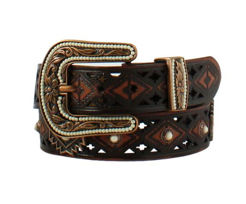 Angel Ranch® Ladies Brown Aztec Concho Belt