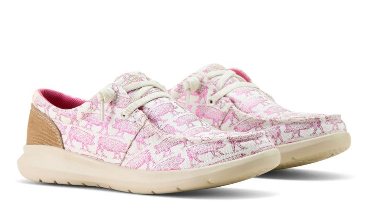 Ariat® Ladies' White/Pink Piggy Print Hilo Casual Shoes