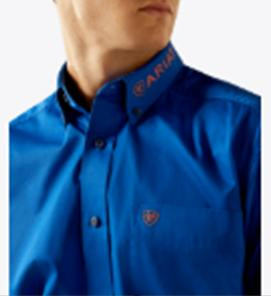 Ariat® Men's L/S Blue/Orange Team Logo Twill Classic Fit Button Shirt