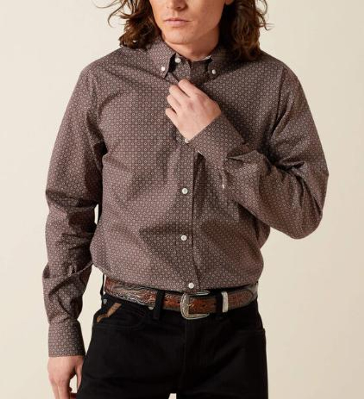 Ariat® Men's L/S Brown Print WF Arthur Classic Fit Button Shirt