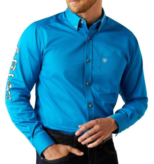 Ariat® Men's L/S Solid Bright Blue Team Logo Button Shirt