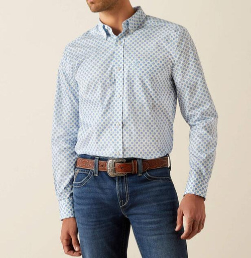 Ariat® Men's L/S Booker Blue Print WF Fitted Button Shirt