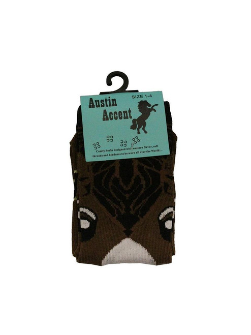 Cute horse face is the feature of these socks from Austin Accent designed with western flavor and comfort in mind.