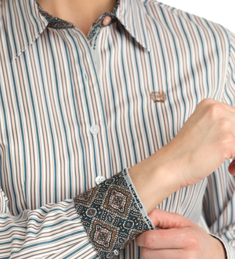 Cinch® Ladies' L/S White/Blue/Peach Striped Button Shirt