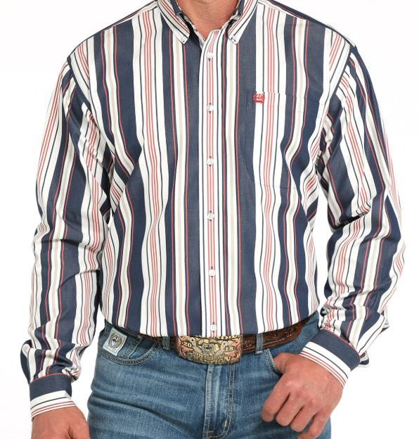 Cinch® Men's L/S Navy Multicolor Stripe Button Shirt