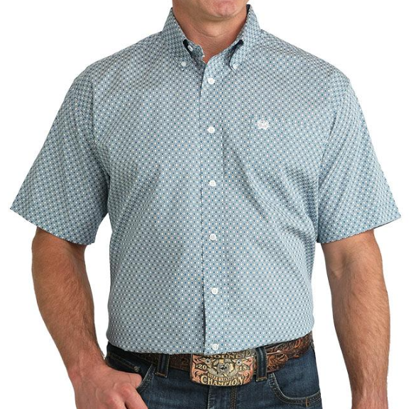 Cinch® Men's S/S Blue/White Geo Print Button Shirt