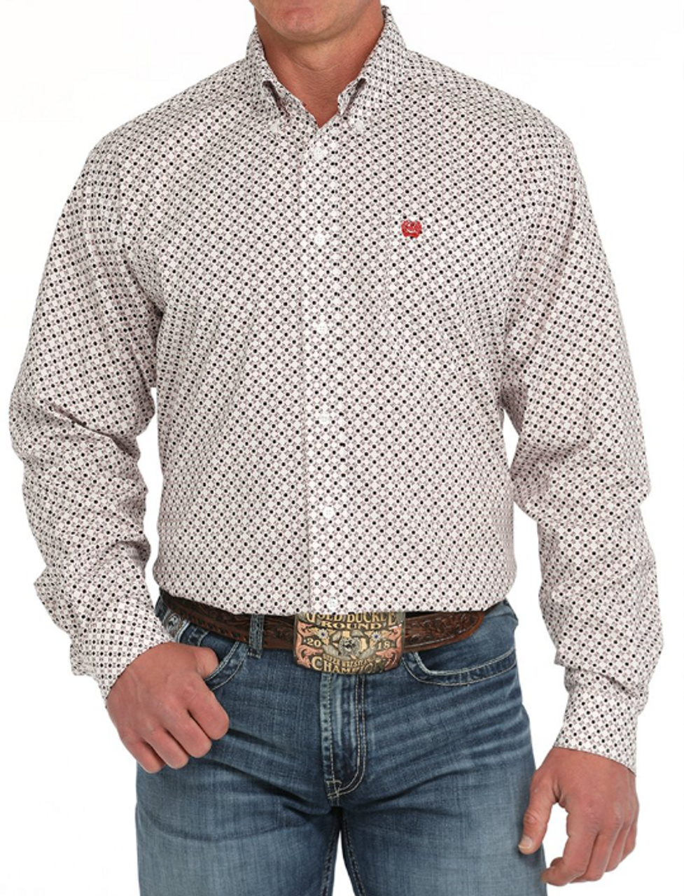 SALE Cinch® Men's L/S White/Black Geo Print Button Shirt
