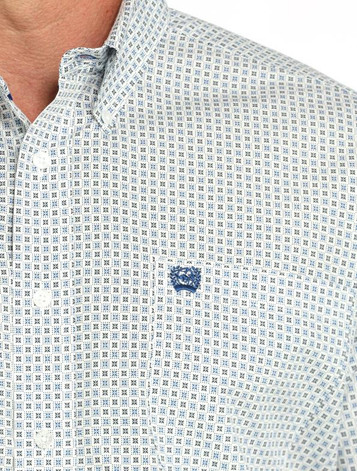Step out with a fresh look this season wearing a short-sleeve orange geometric printed cotton plain weave crafted by Cinch. This classic shirt features an open left front pocket, button-down collar, embroidered logo, and white buttons.