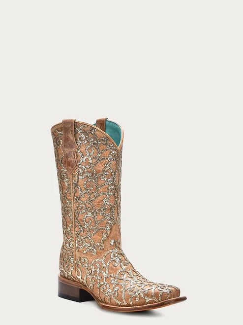 Corral® Teen/Girls' Straw Glitter Inlay Square Toe Boots