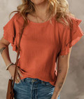 Dear-Lover® Ladies' S/S Orange Crinkled Cotton Gauze Blouse