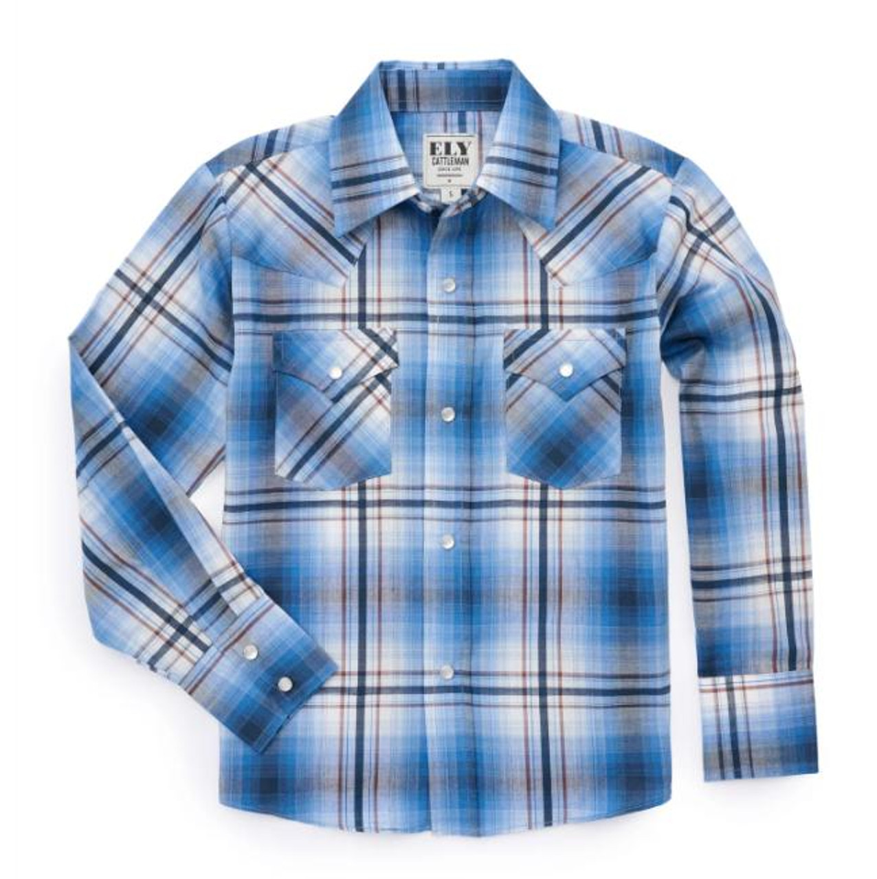 SALE Ely Cattleman® Boys' L/S Ombre Textured Plaid Snap Shirt