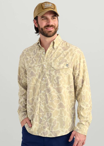 HUK® Men's L/S KC Sand Camo Print Tide Point Button Shirt