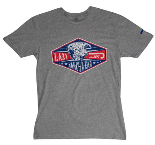 Lazy J Ranch Wear® Men's S/S Heather Grey Blue/Red Diamond T-Shirt