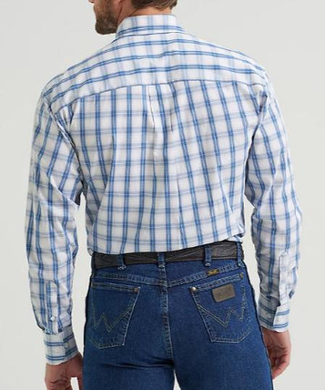 EFFORTLESSLY FRESH-PRESSED.Create the sharp, crisp look you want without touching an iron. Combining the Western-style you want with the care-free maintenance you deserve, this wrinkle-resistant snap shirt from Wrangler® is a clear choice for the busy...