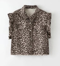 Miss Sparkling® Ladies' S/S Ruffle Leopard Denim Vest