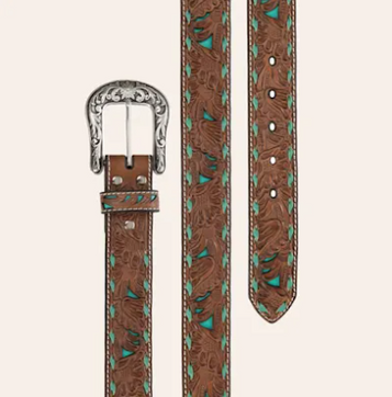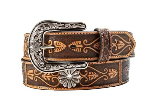 Nocona® Ladies' Brown/Tan Embossed Panels/Daisy Conchos Belt