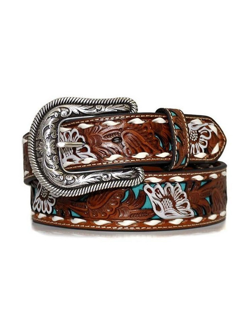 Nocona® Ladies' Floral Tooled Overlay Brown Leather Belt