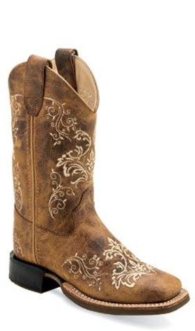 Old West® Youth Brown with Scroll Embroidery Square Toe Boots