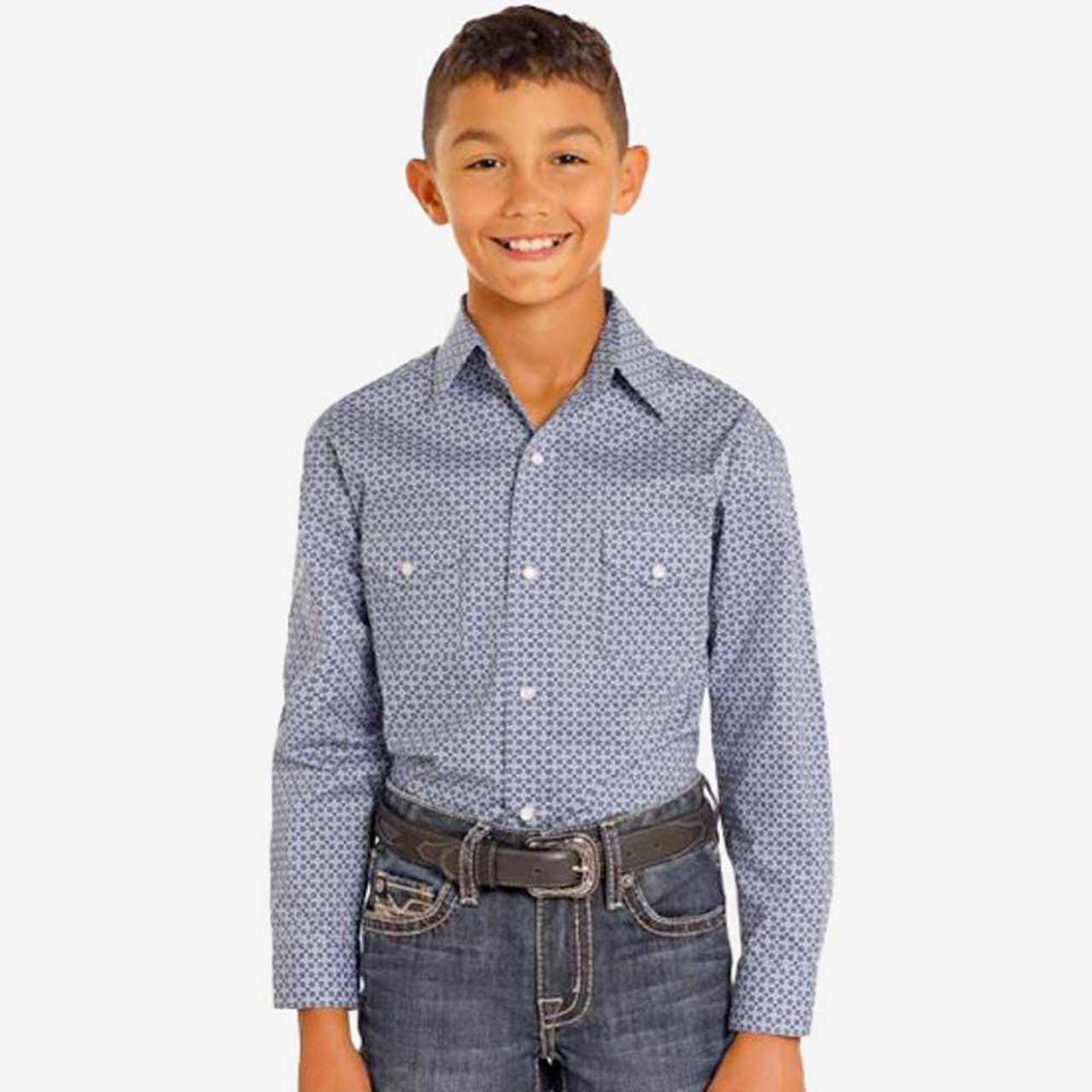 SALE Panhandle Rough Stock® Boys' L/S Midnight Blueprint Snap Shirt