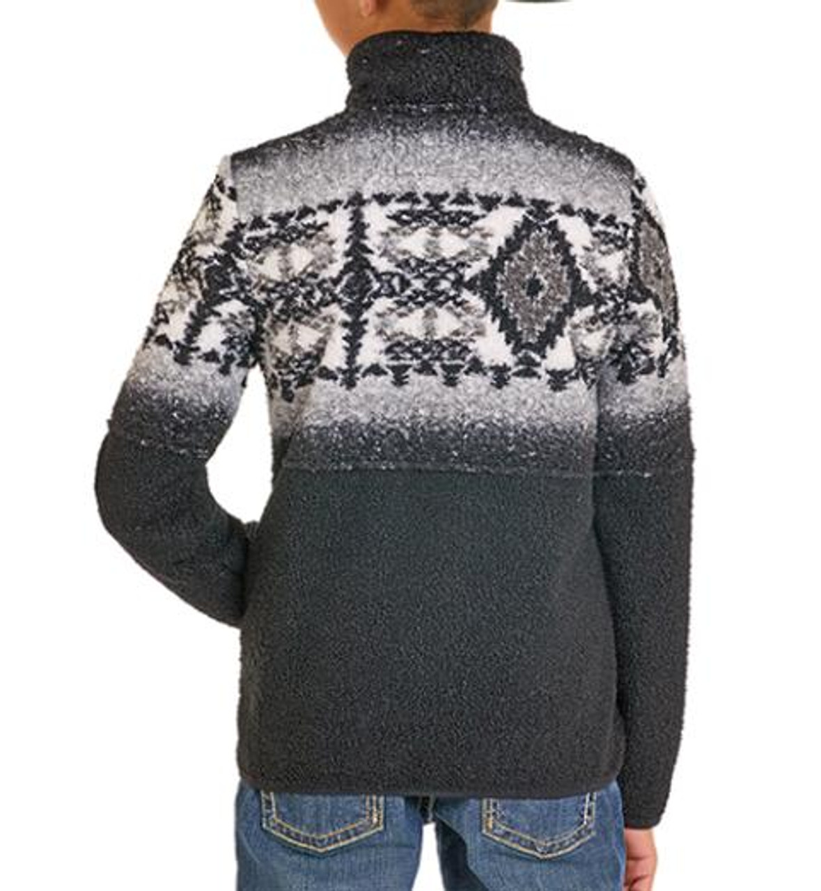 Panhandle Slim® Boys' Black/Grey Aztec 1/4 Zip Fleece Pullover
