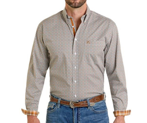 Panhandle Slim® Men's L/S Tan Geo Print Button Shirt