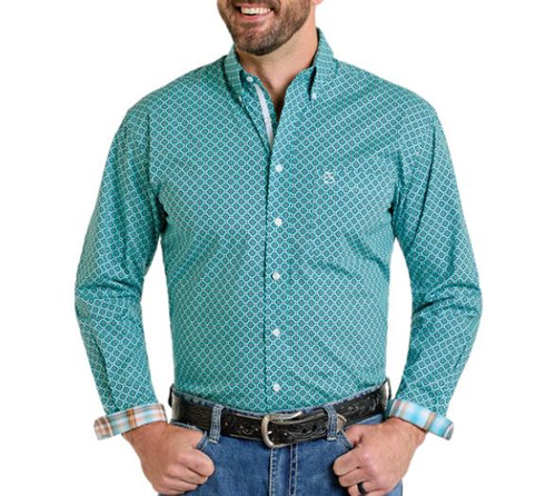 Panhandle Slim® Men's L/S Turquoise Geo Diamond Print Button Shirt