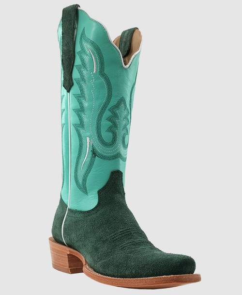 R. Watson presents these teal roughout and mint cowhide western boots. These boots have a 10-row stitch pattern, R. Watson comfort system, all leather stacked heel, counters, solid steel shank, and 10 iron outsole. 13″ total in height.