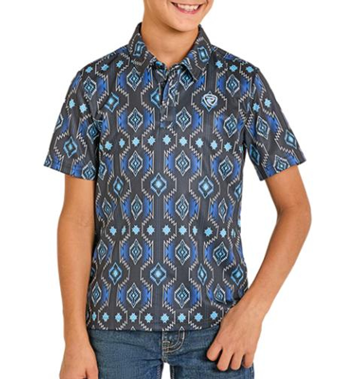 Rock & Roll Denim® Boys' S/S Blue/Black Aztec Print Polo Shirt