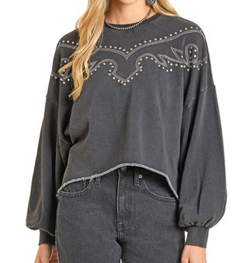 Rock & Roll Denim® Ladies' Washed Black Stitched/Studded Sweatshirt