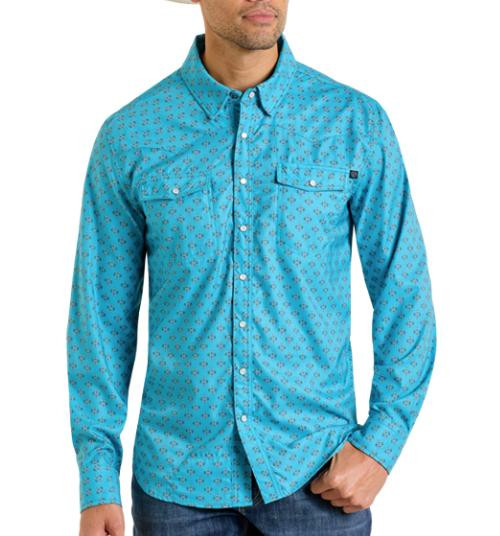 Rock & Roll Denim® Men's L/S Turquoise Aztec Print TEK Snap Shirt