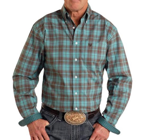 SALE Rock & Roll Denim® Men's L/S Turquoise Plaid Button Shirt