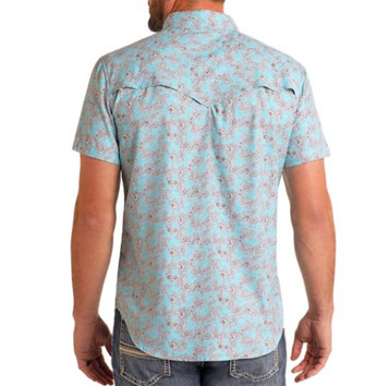 Rock & Roll Denim® Men's S/S Turquoise Aztec Print TEK Snap Shirt