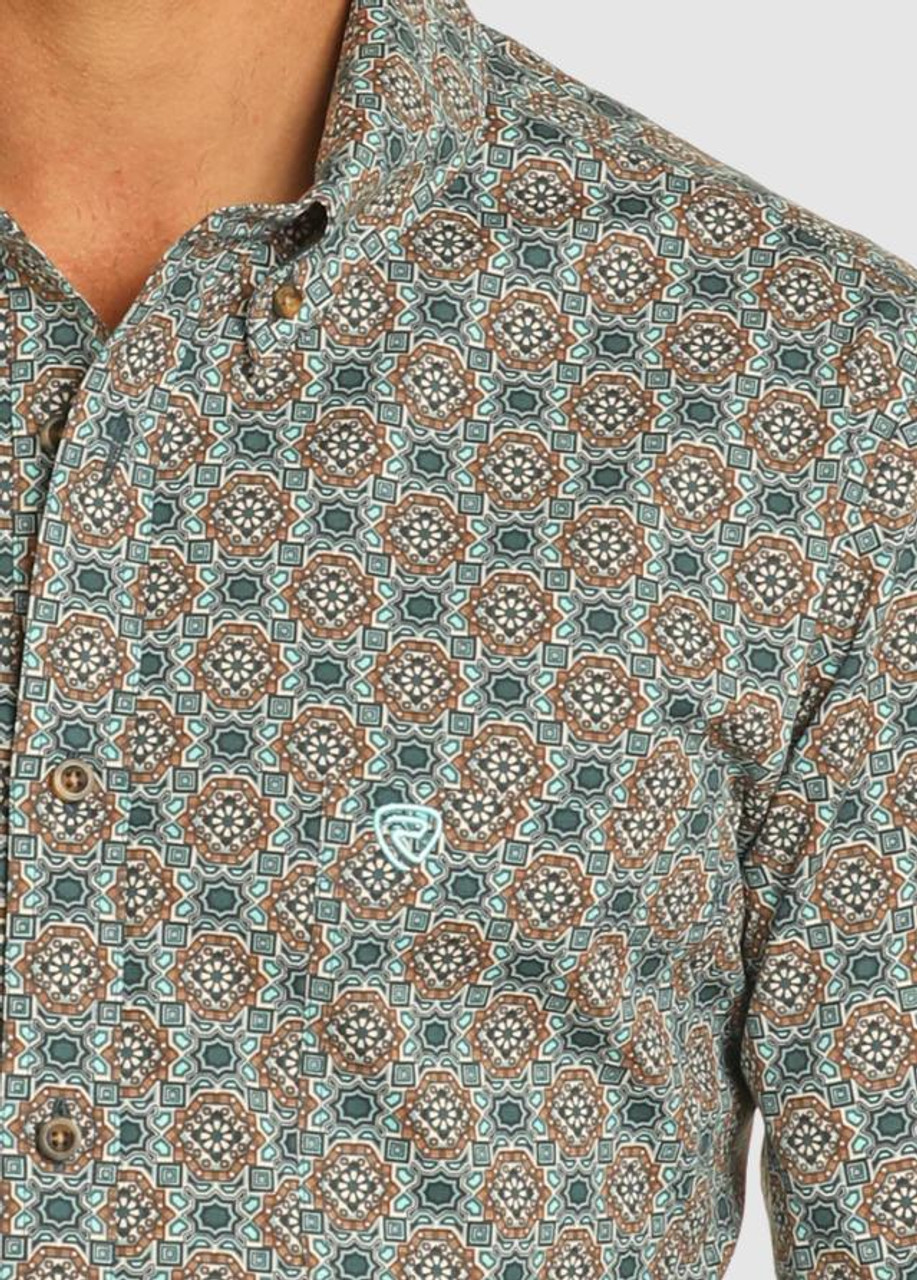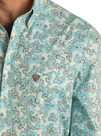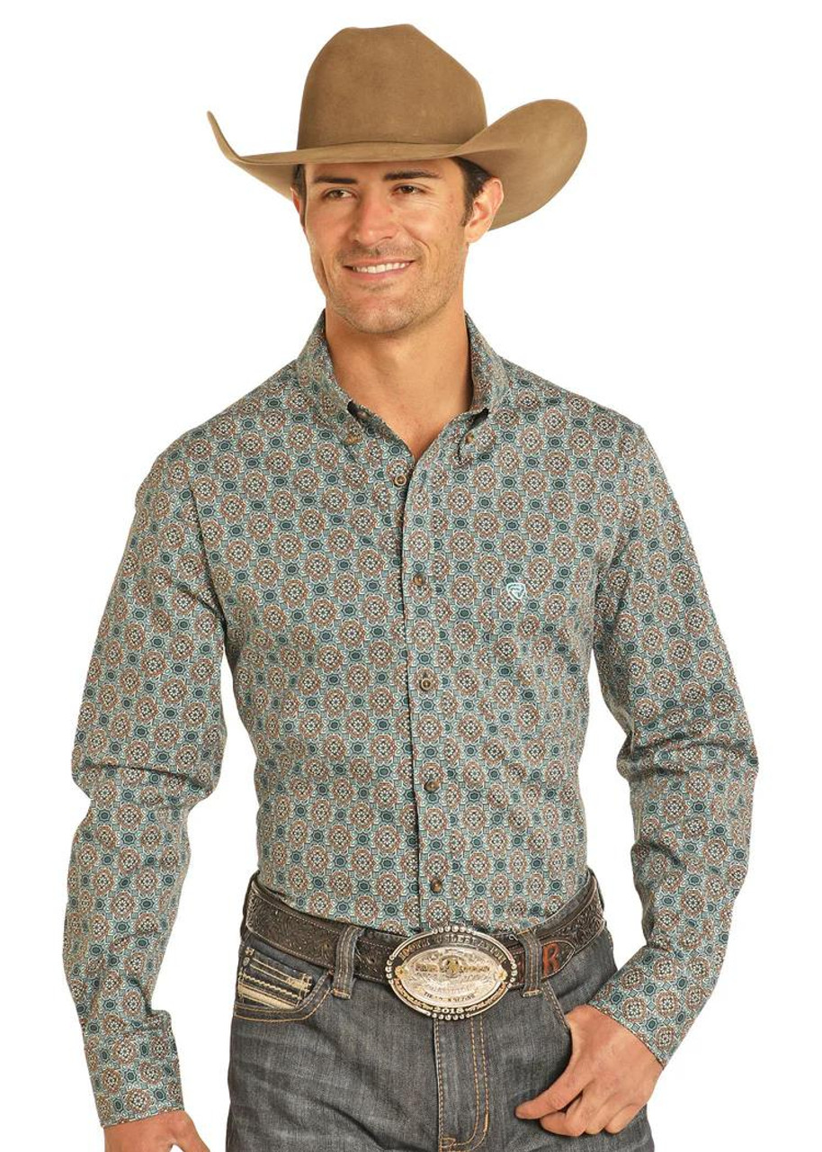 SALE Rock & Roll Denim® Men's L/S Turquoise Medallion Print Classic Fit Button Shirt