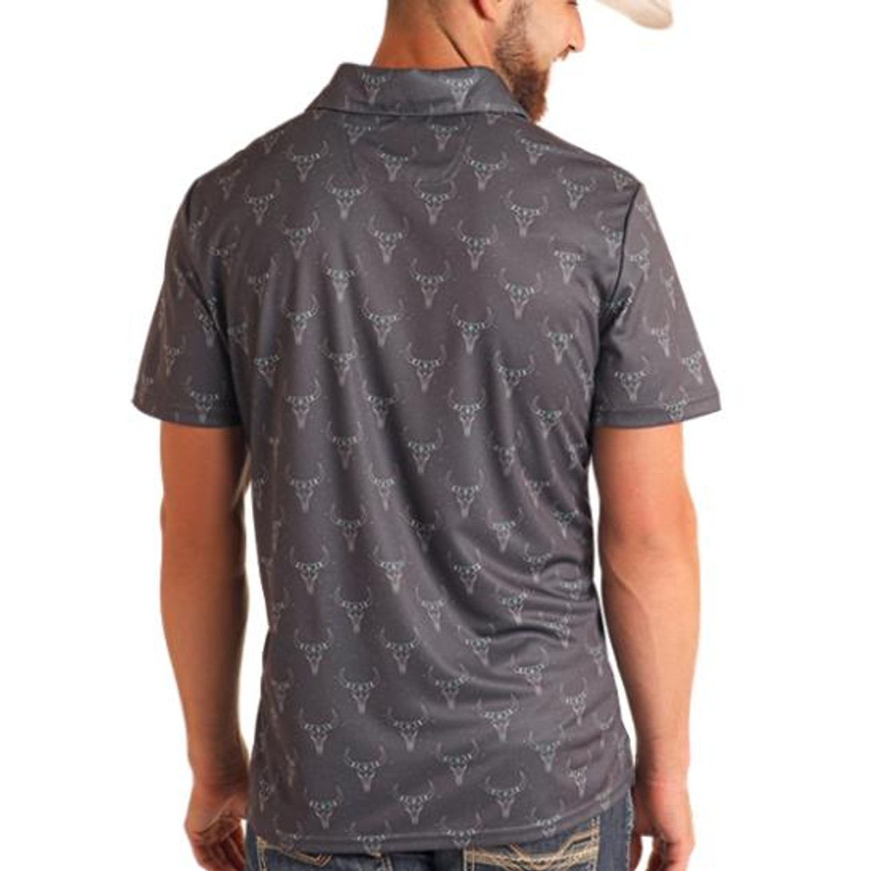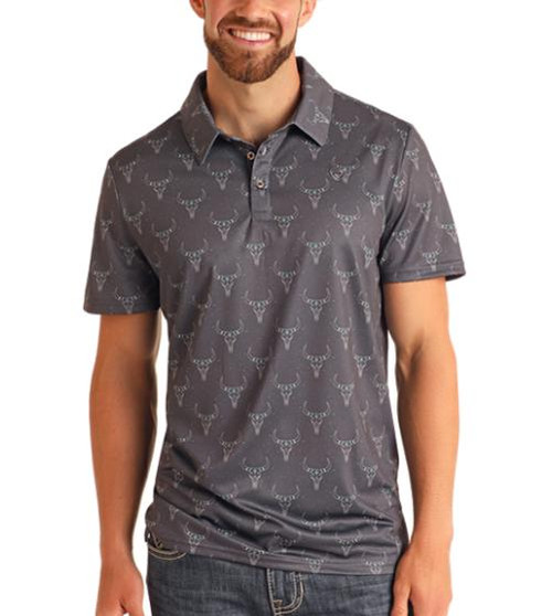 SALE Rock & Roll Denim® Men's S/S Charcoal Steerhead Print Polo Shirt