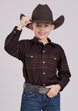 Roper® Boys' L/S Brown/Border Stripe Snap Shirt