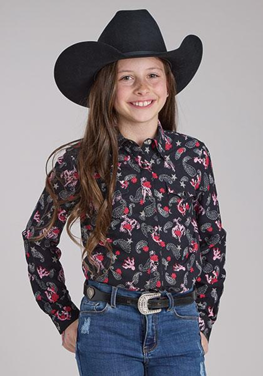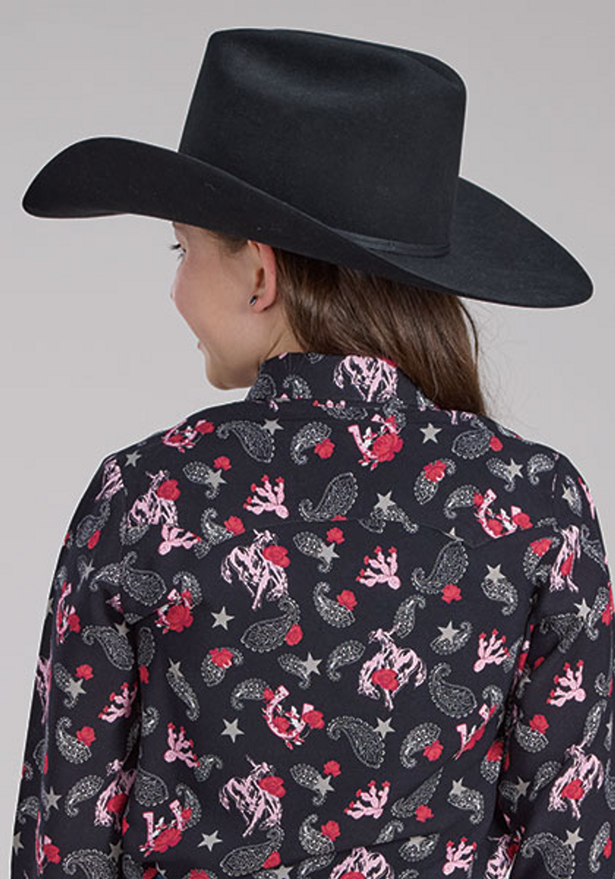 SALE Roper® Girls' L/S Black Paisley/Bronc Rayon Snap Shirt