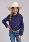 Roper® Girls' L/S Deep Blue Aztec Print Snap Shirt