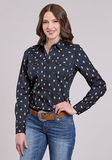 Roper® Ladies' L/S Blue/Aztec Print Snap Shirt