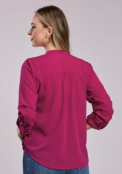 Roper® Ladies' L/S Raspberry Crepe Embroidered Front Button Blouse