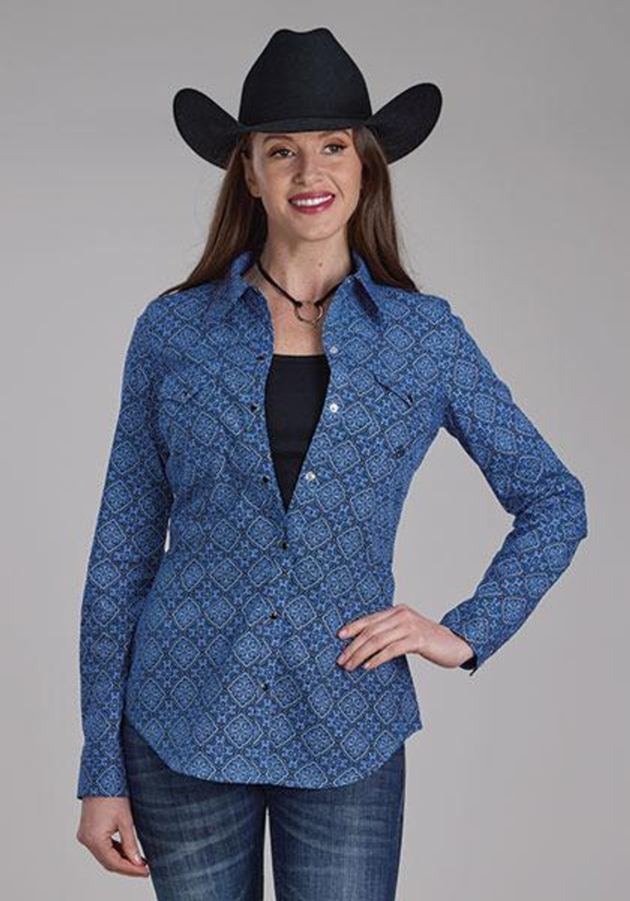 SALE Roper® Ladies' L/S Sapphire Blue Print Snap Shirt