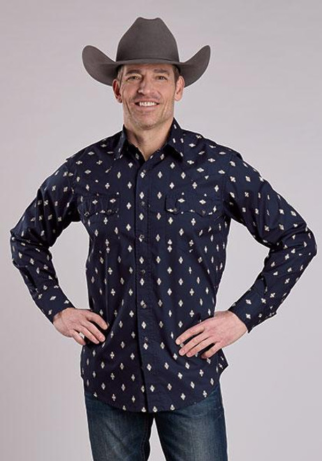 Men's Long Sleeve Shirt * Printed 100% Cotton Poplin * 1-Point Curved Front & Back Yokes * 1-Point Curved Pockets with 2-Point Curved Flaps * 3-Snap Cuffs * Opaque Snap Front * Garment Washed
