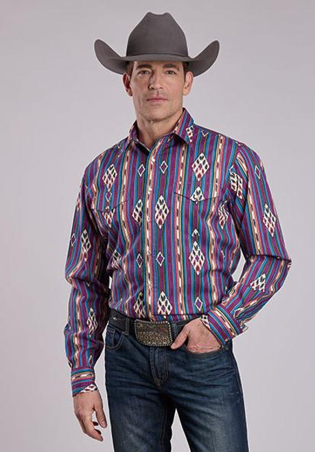 Roper® Men's L/S Purple Aztec Print Snap Shirt