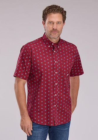 Roper® Men's S/S Red Diamond Print Button Shirt