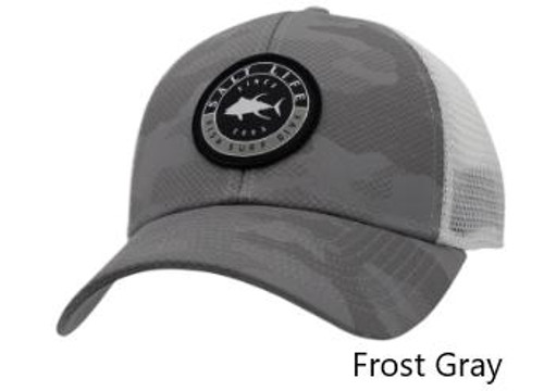 The Scaled Rogue stretch fit hat is made from a polyester and spandex mix with a front logo, rear patch, and mesh back. This Salt Life men's hat is available in multiple colors and features a stretch fit and precurved bill.