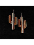 These Silver Strike earrings by M&F Western Products will be your favorite. Brown, black, white, turquoise and gold striped cactus shaped earrings. French hook style.