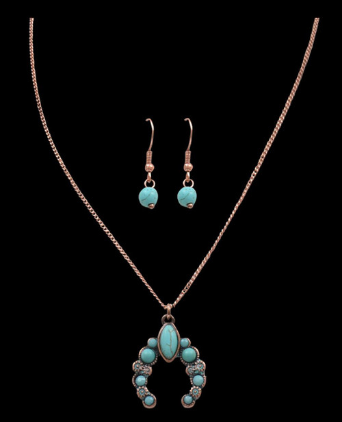 Silver Strike® Patina & Turquoise Squash Blossom Jewelry Set