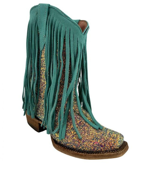 Tanner Mark® Girls' Mermaid Blue Glitter/Turquoise Fringe Square Toe Boots