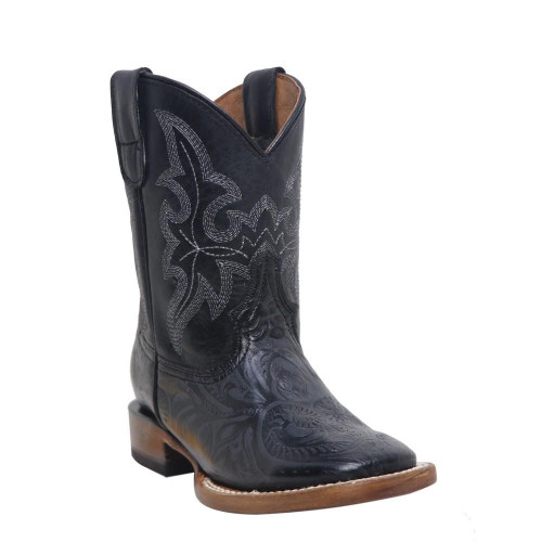 Tanner Mark® Little Kids Black Embossed Square Toe Roper Cowboy Boots