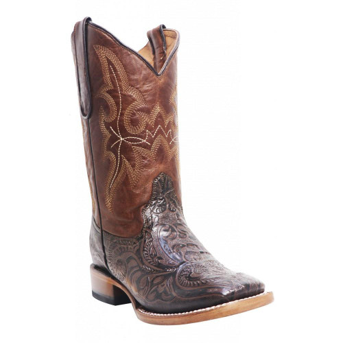 Tanner Mark® Youth Brown Tooled Square Toe Roper Boots